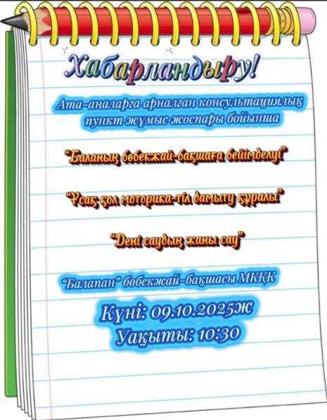 «Консультациялық пункт жоспарына сәйкес ата-аналар үй жағдайында «5-ке дейінгі қосымша» тапсырмаларымен өздігінен жұмыс жасайды. Тапсырмаларды орындау арқылы балалардың сандық түсініктері бекітіліп, үй мен балабақша байланысы нығаяды.Бұл тапсырма баланың танымдық дағдыларын дамытуға үлкен мүмкіндік береді.